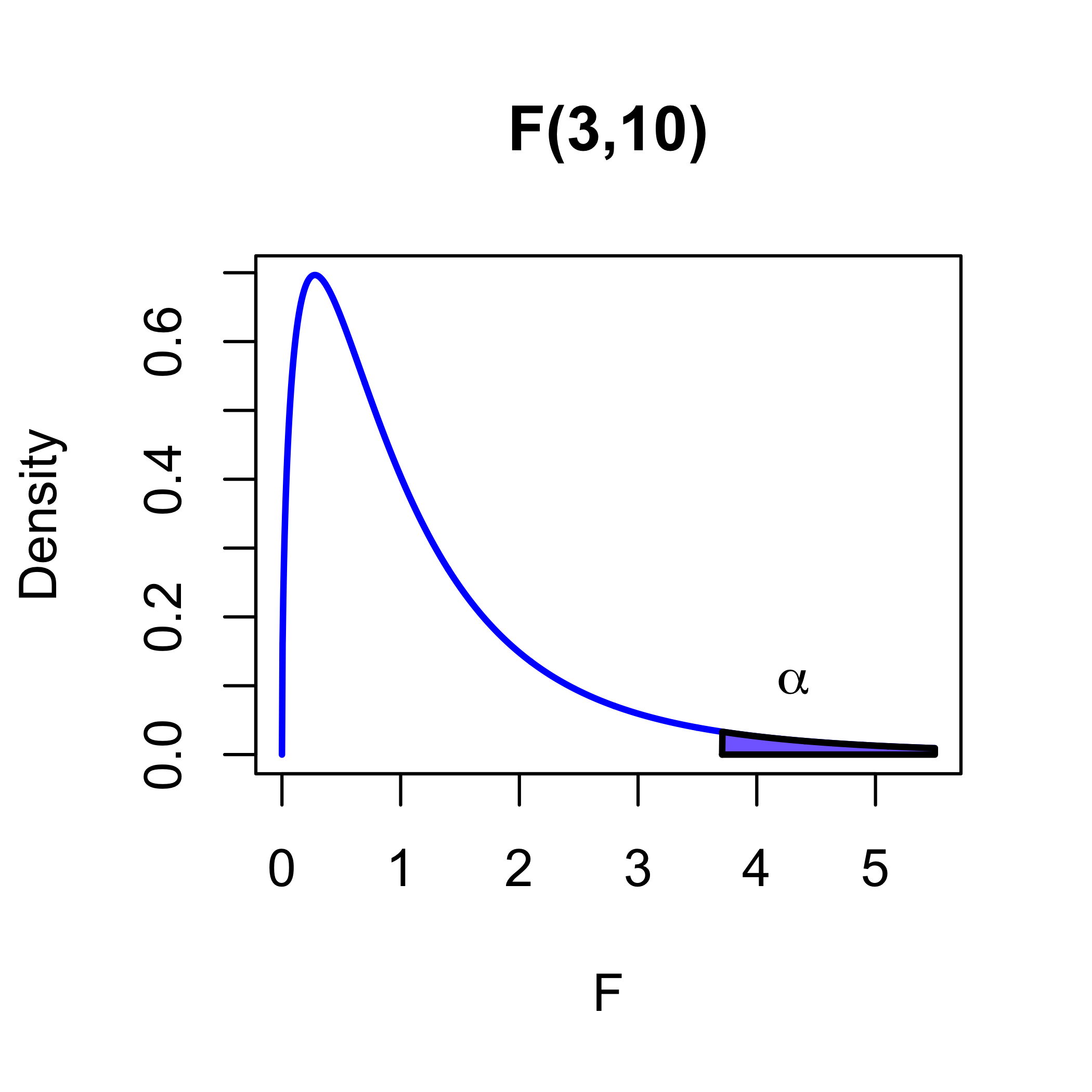 the probability that we reject M0 when it is true, is \[\begin{align*} \Pr( \text{ reject M0} & \mid \text{ M0 true})\\ & = \Pr(F(\mathbf{Y}) > F_{p,n−p,1−\alpha} \mid \boldsymbol{\beta}= \mathbf{0}) \\ & = \alpha \end{align*}\]