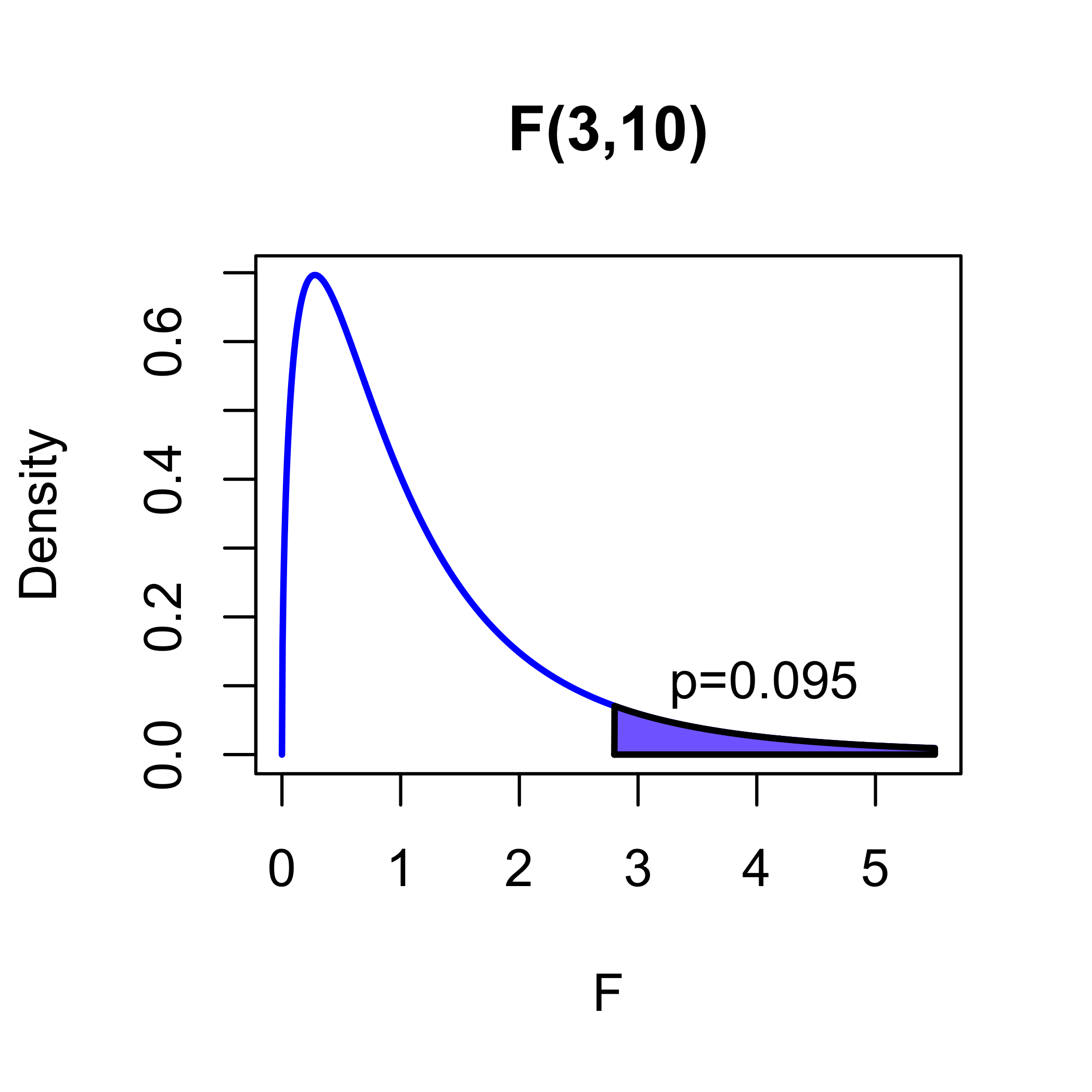 the probability that a random variable \(F \sim F_{p,n−p}\) is larger than the observed value \(F(\mathbf{Y})\), if the null model is true