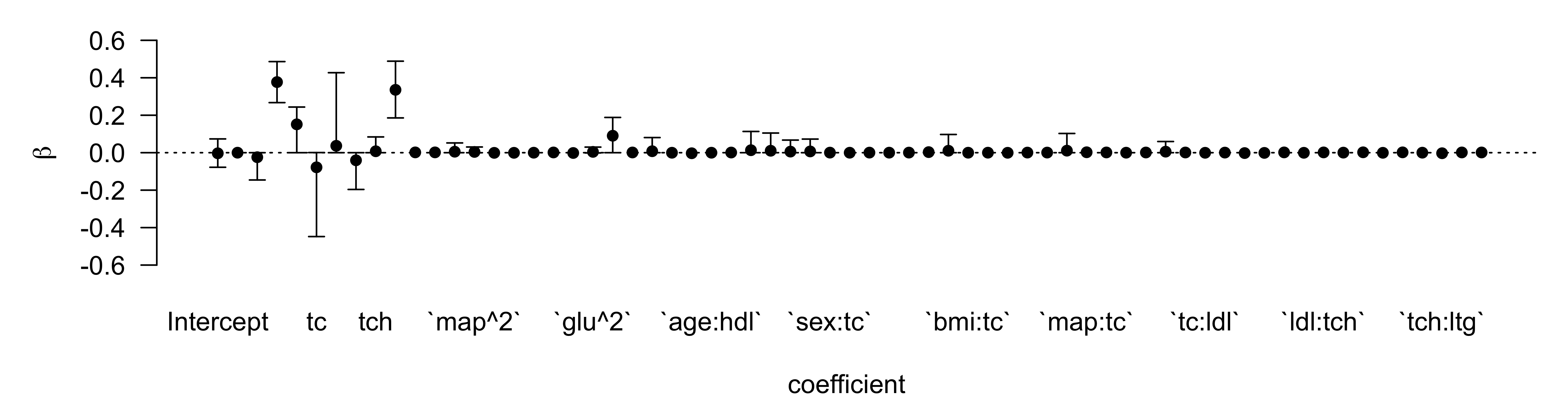 $ sex:bmi: num 1.304 0.935 0.915 0.142 0.635 ...